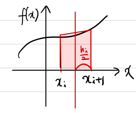 $h_{i}f(y_{i})=\frac{h_{i}}{2}\left [f(x_{i})+f(x_{i+1}) \right]-\frac{h_{i}^{3}}{8}f^{''}(y_{i})+\cdots$