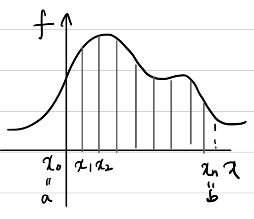 $x_{0}(=a)$부터 $x_{n}(=b)$까지 적분을 하려고 합니다.