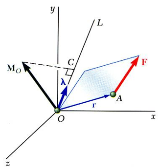$M_{OL}=\vec{\lambda}\cdot \vec{M_{O}}=\vec{\lambda}\cdot (\vec{r}\times \vec{F})$