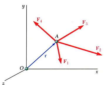 $\text{Moment }M_{O}\text{ of a force F applied at the point A about a point O, }\vec{M_{O}}=\vec{r}\times \vec{F}$