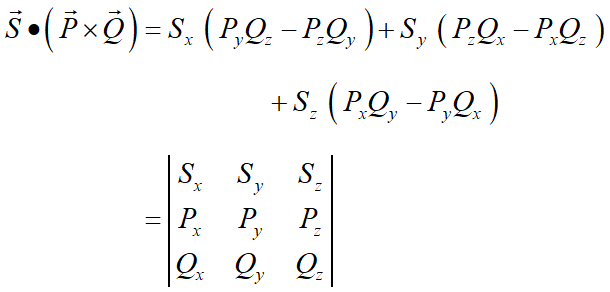 P, Q벡터의 외적을 S 벡터에 대해 내적한다면,