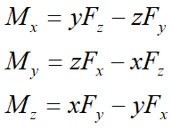 만약 Cartesian coordinate에 대해서 F의 moment를 구하면 다음과 같습니다. (x,y,z는 force가 작용하는 위치)