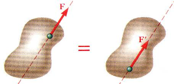 이 그림에서 $\vec{F}$가 line of action에 따라서 조금 움직여서 $\vec{F^{'}}$ 상황이지만 실제 motion에는 영향을 미칮 않습니다.