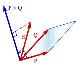 product 방향은 $\vec{P},\vec{Q}$에 수직인 벡터
