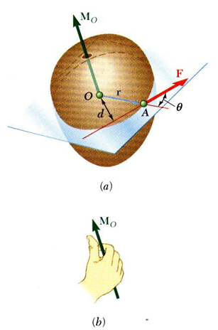 $\text{The moment of F about O : }M_{O}=r\times F$