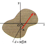 (만약에 $\vec{M_{O}^{R}}$가 z성분 외에 x,y 성분이 있고 $\vec{R}$는 xy평면 벡터라고 가정한 다음에 만족하는 거리벡터 $\vec{r}$을 찾으려고 하면 equation 상으로 만족할 수 없는 경우가 생김을 알 수 있습니다.)