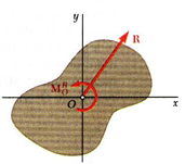 아래 그림처럼 점 O에 대해서 표현한 것입니다. 이 때 작용하는 모멘트를 $M_{O}^{R}$, force는 $R$가 있습니다.