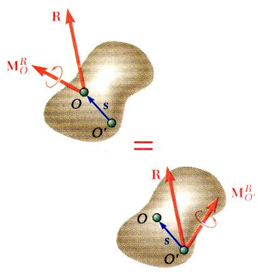 위 그림을 보면 점 $O$에 작용하는 $M_{O}^{R}$과 force $R$이 있을 때 점 $O^{'}$에 작용하는 $M_{O^{'}}^{R}$과 force $R$은