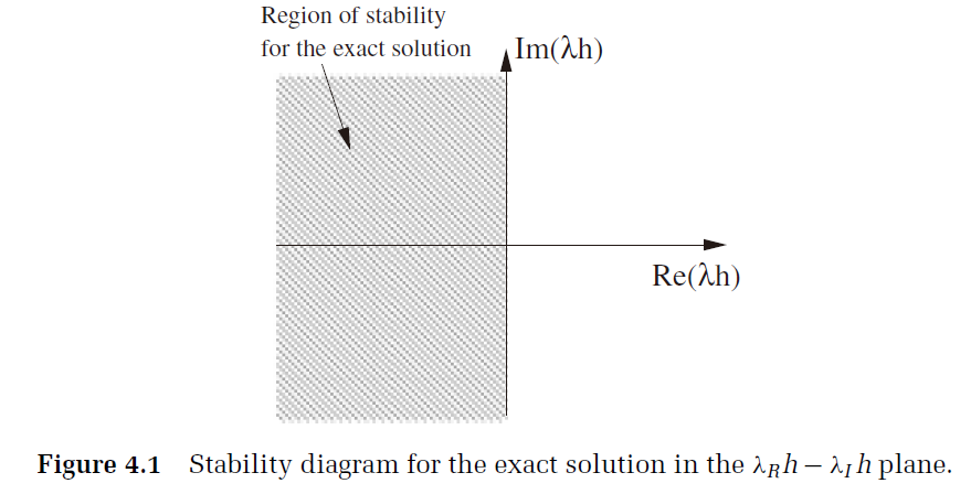 exact solution의 stable 영역은 다음과 같은데 (그림에서 $\lambda h$는 이 글에서 $\lambda \Delta t$와 같습니다.)
