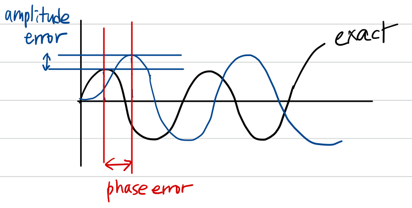 exact solution은 amplication factor가 $e^{i\omega \Delta t}$이므로 $\omega \Delta t$가 곧 phase를 나타냅니다.