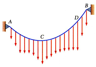 위에서 cable이 parabolic curve인 것과 달리 여기서는 cable의 shape가 쌍곡 함수로 나타납니다.