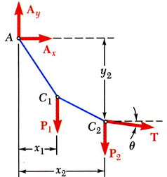 또한 cable을 two force member로 생각하고 있어서 왼쪽 그림의 $\theta$는 $C_{2},C_{3}$가 이루는 각이라고 봐도 될 것입니다.