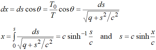 앞서 본 parabolic cable과 다르게 catenary cable은 길이(s)당 균일한 무게가 분포되어있다고 생각합니다. 즉, cable의 vertical distance를 고려해서 각 x지점에 load가 달라진다는 뜻입니다.