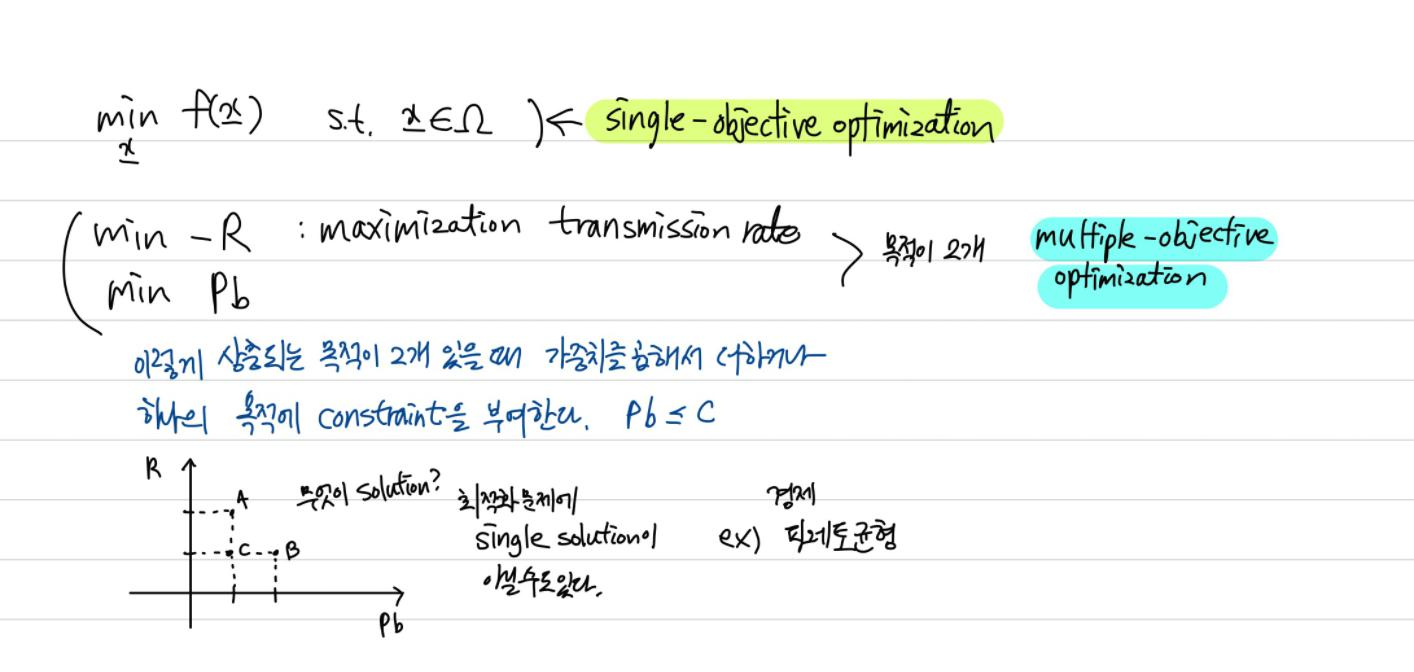 optimization에는 single-objective optimization과 multiple-objective optimization으로 나눌 수 있고,