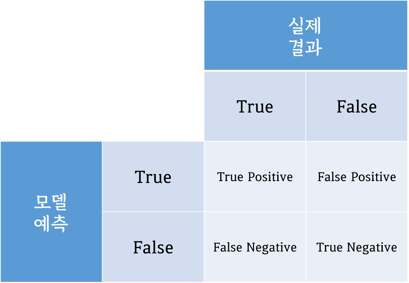 - Precision : 모델이 true라고 예측한 것 중에 실제로 true인 비율