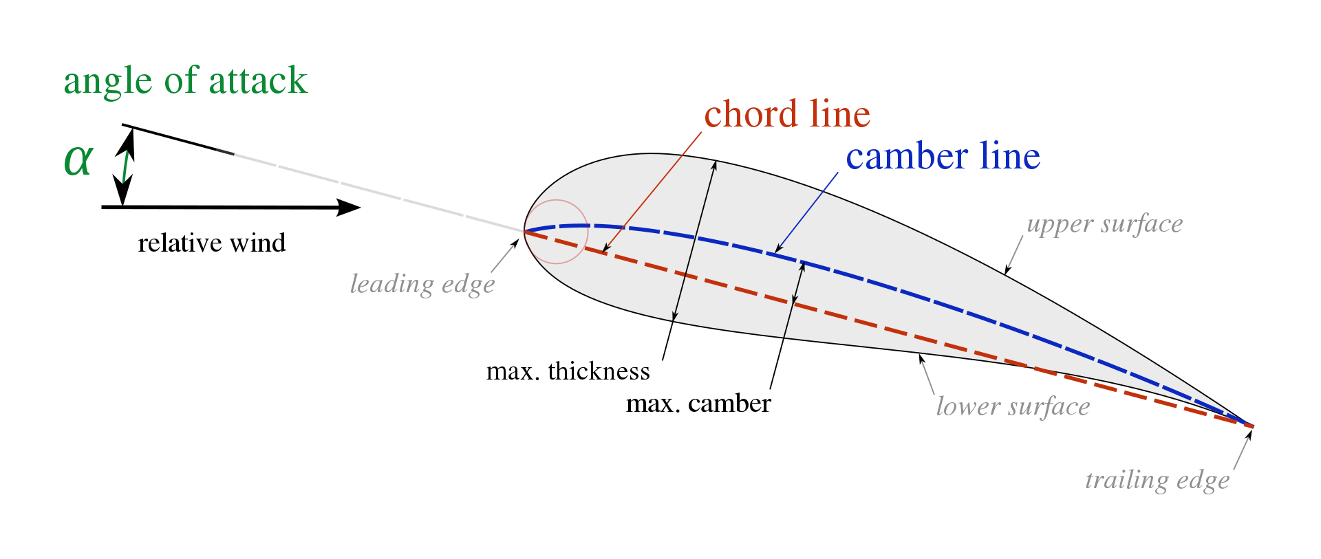 - Angle of Attack (AoA) : chord line과 relative wind 사이의 각도