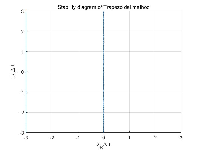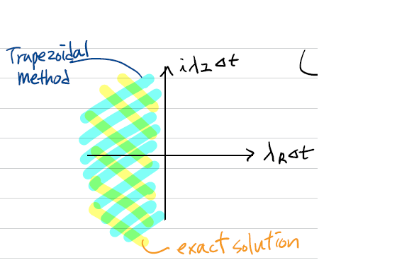 trapezoidal method의 장점은 다음과 같이 exact solution과 동일한 stability 영역을 갖는다는 점입니다.