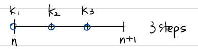 이렇게 3개의 steps일 때는 $y^{n+1}=y^{n}+\gamma_{1} k_{1}+\gamma_{2} k_{2}+\gamma_{3} k_{3}$