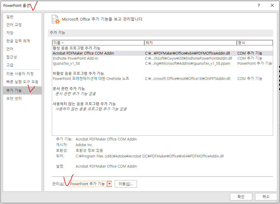 2. MS Powerpoint에서 추가 기능에 들어가 IguanaTeX 추가