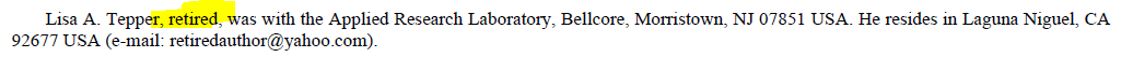 은퇴하거나 사망한 저자가 있을 때 아래와 같이 작성한다. 은퇴한 경우에는 현재 어디에 살고 있는지 적는다.