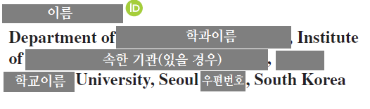 저자의 소속을 밝혀야 한다. 기본 구성은 예시를 그대로 따라 쓰면 된다.