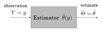 아래 그림을 보면 observation에 대해서 적절한 estimator를 골라 추정된 model parameter $\hat{\theta}$를 estimate라고 한다. estimator는 y에 대한 estimate의 함수이고, 실제 observation을 대입해서 얻은 것을 estimate라고 이해할 수 있다.