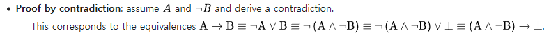 이 표현은 위의 Proof by contradiction 위키피디아 문서에서 proof by contradiction을 증명하는데 중요하게 쓰인다.