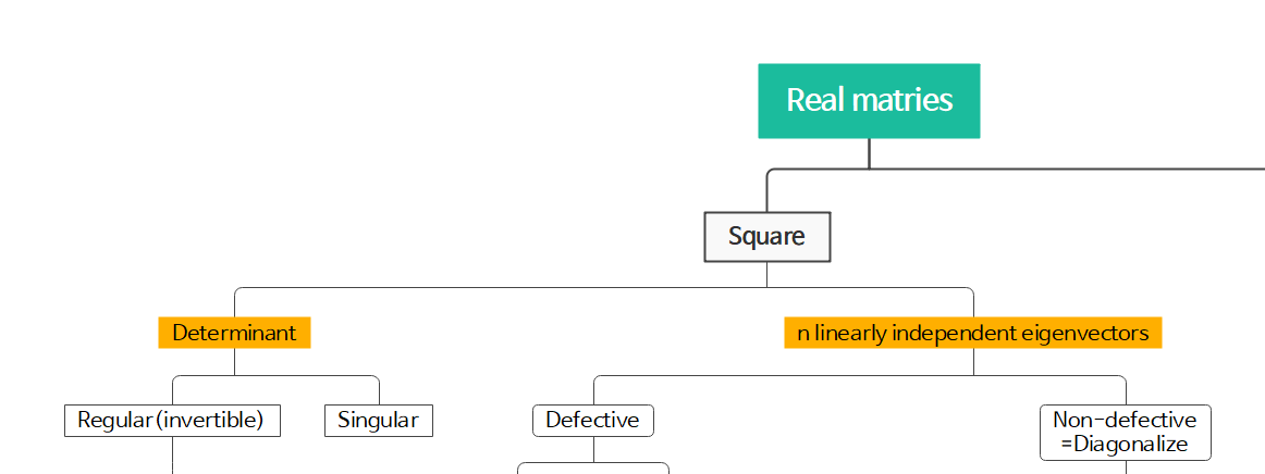 matrix를 eigenvalue decomposition을 했을 때 선형독립인 eigenvectors가 matrix의 차원인 n개만큼 존재하는지 아닌지에 따라 나눌 수 있다.