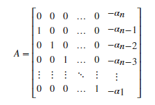 다음과 같은 matrix form을 companion matrix (form)라고 부른다.