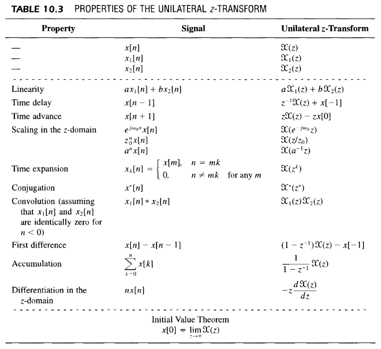 time advance $x[n+1]$를 보면 $zX(z)-zx[0]$로 나타나는데 이는 $\frac{dx}{dt}$의 Laplace transform인 $sX(s)-x(0)$와 일치하는 부분입니다.