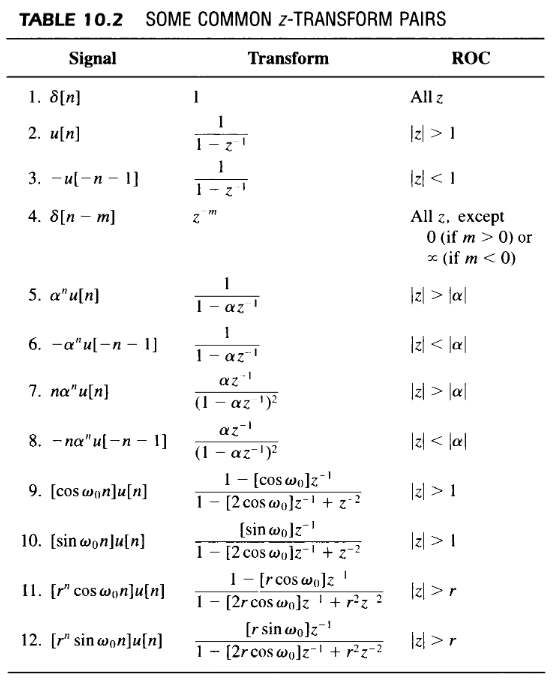Laplace transform이 그러하듯, table에 나와있습니다. 물론 지금까지 얘기해온 것은 unilateral z-transform이기 때문에 주의해야하지만 아래 table에 있는 대부분의 예는 k<0일 때 f(k)=0인 경우입니다. 아래 표에서 k와 n이 동일한 문자라고 보시면 됩니다.