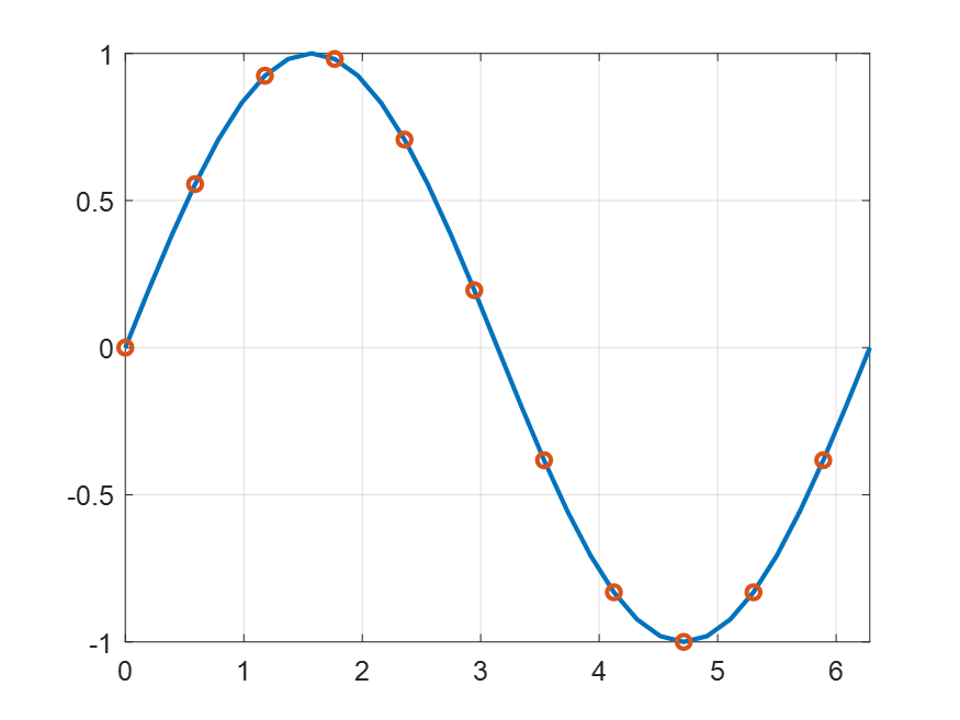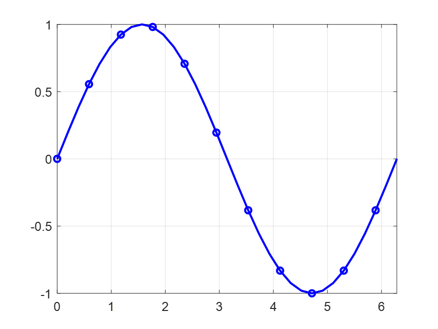 plot(x,y,"-o","MarkerIndices",[1 5 10])