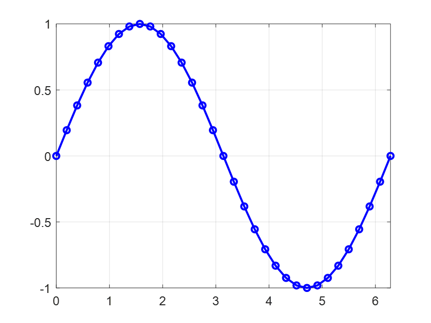 plot( x, y, '-o', 'color', 'b' ) ;