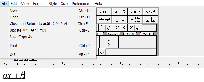 3. 수식 입력 후 ctrl+S (또는 file에 들어가서 update)