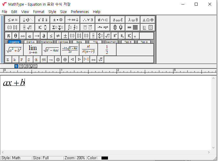 이렇게 되면 다시 수식을 클릭해서 mathtype을 연다. 그리고 다시 저장해주면 저렇게 줄여놓은 크기에 맞게 수식이 재정렬되면서 잘 나온다.