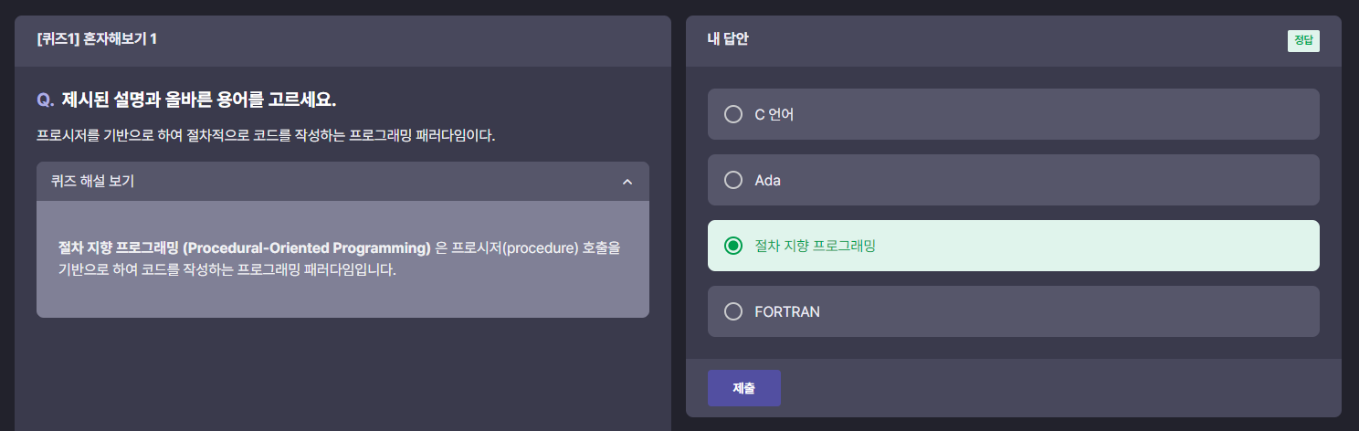 다음 퀴즈 역시 C++ 언어가 객체 지향 프로그래밍 언어임을 알려주고 있다.