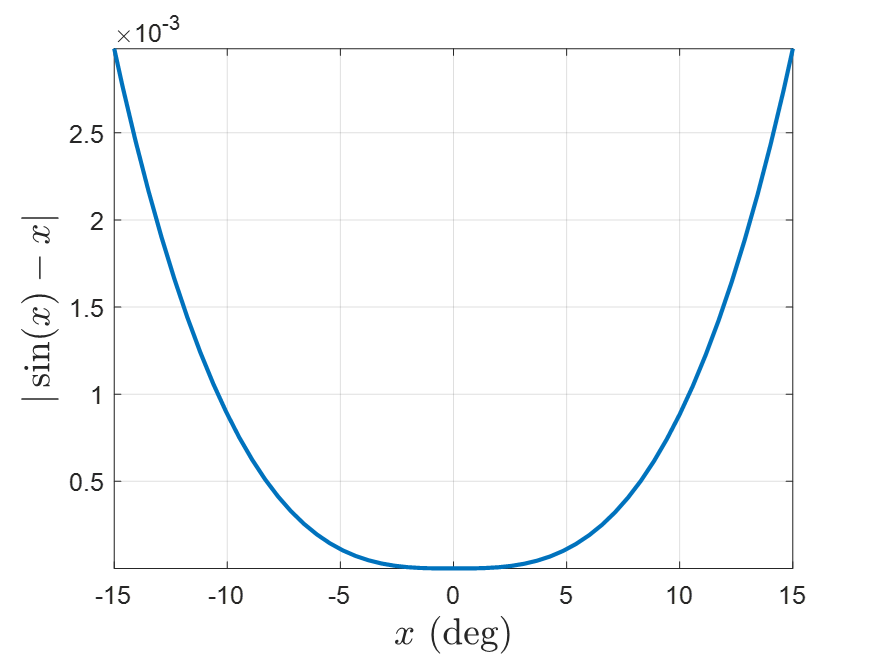 $\sin x \approx x \quad \text{if }x \ll 1$이다.