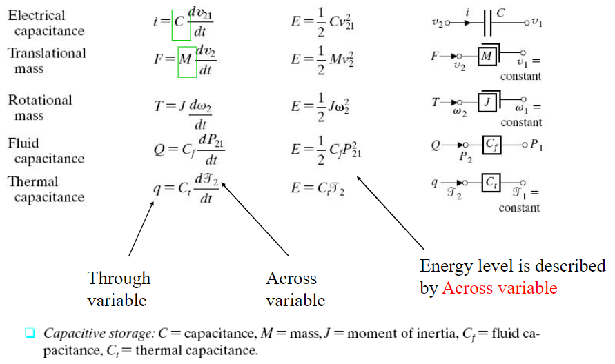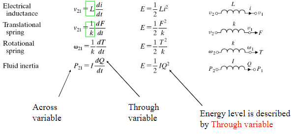 위 그림을 보면 through variable이 across variable의 미분(방정식)으로 나타낼 수 있음을 알 수 있습니다. 또한 에너지는 across variable로 표현할 수 있으므로, A-element는 across variable로 power를 저장하는 element이라고 파악하면 됩니다.