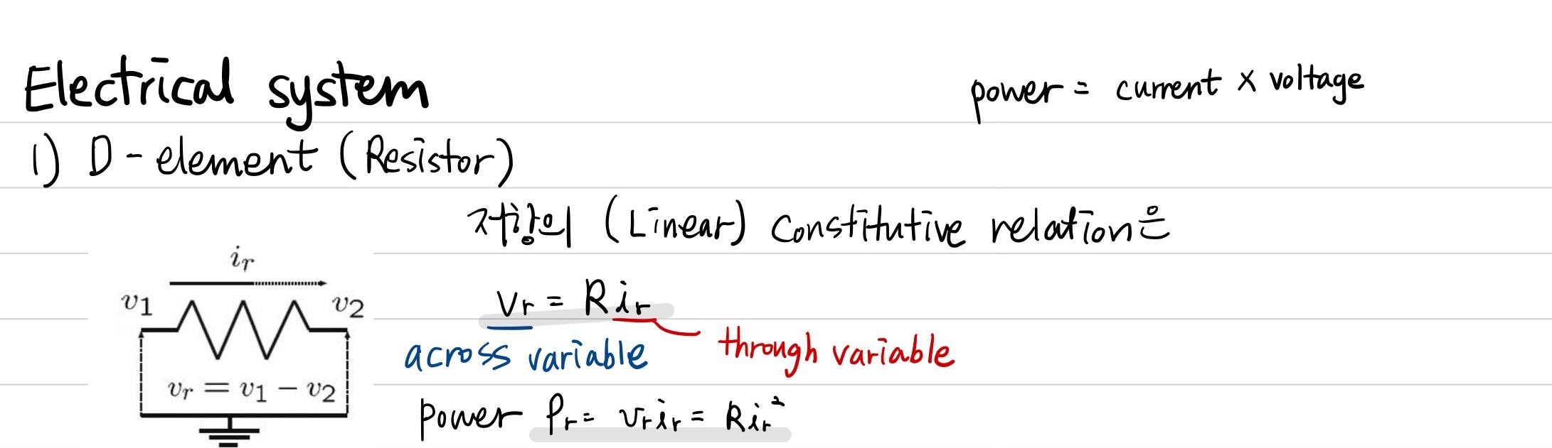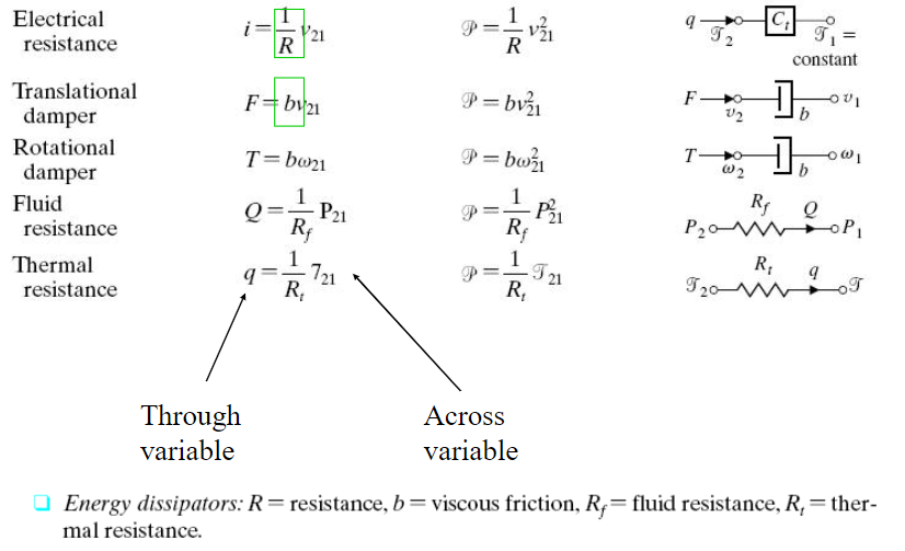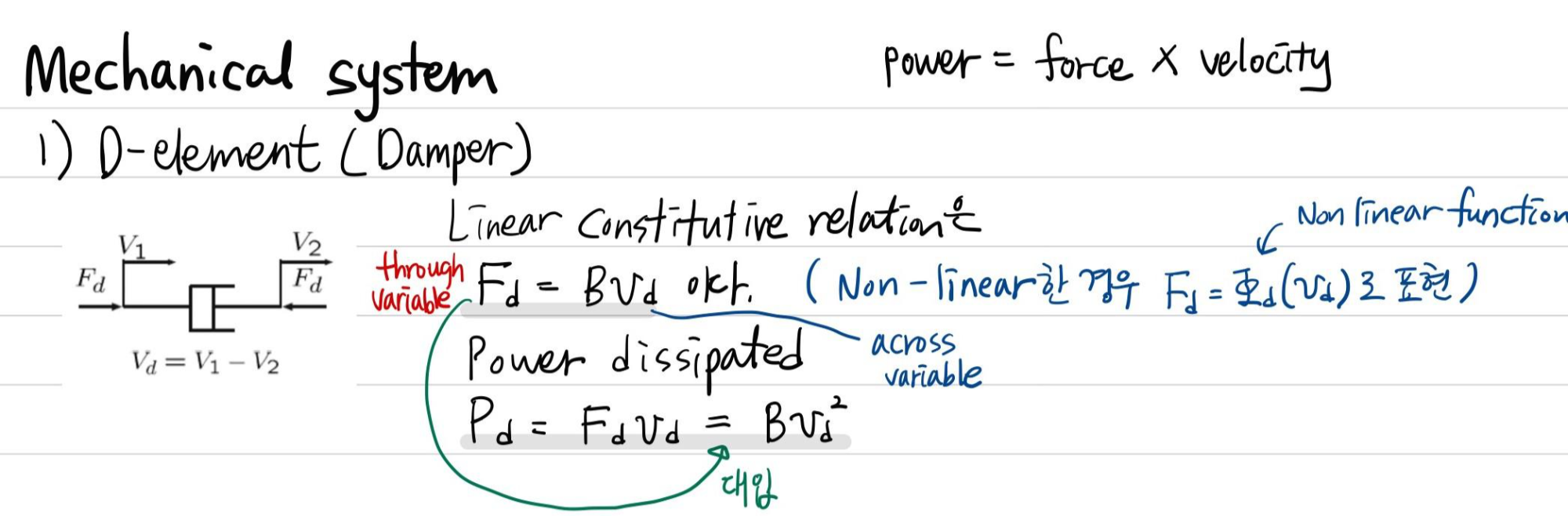 위에서 through variable과 across variable이 미분(방정식) 관계인 것과 달리, D-element는 algebraic equation으로 표현됨을 알 수 있습니다.