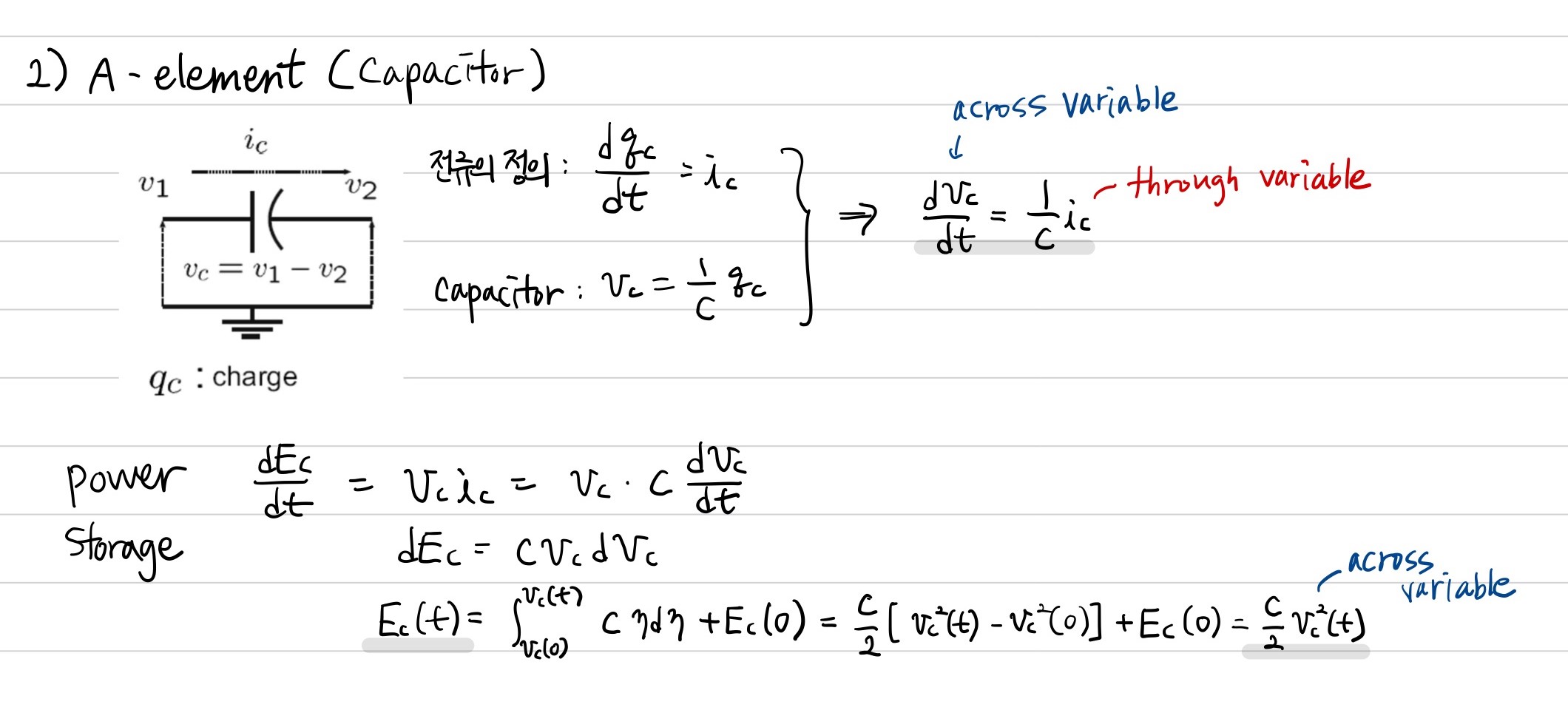 또한 이 element가 가지고 있는 energy는 through variable로 표현할 수 있습니다. 즉, through variable로 power를 저장한다는 것을 살펴볼 수 있습니다.