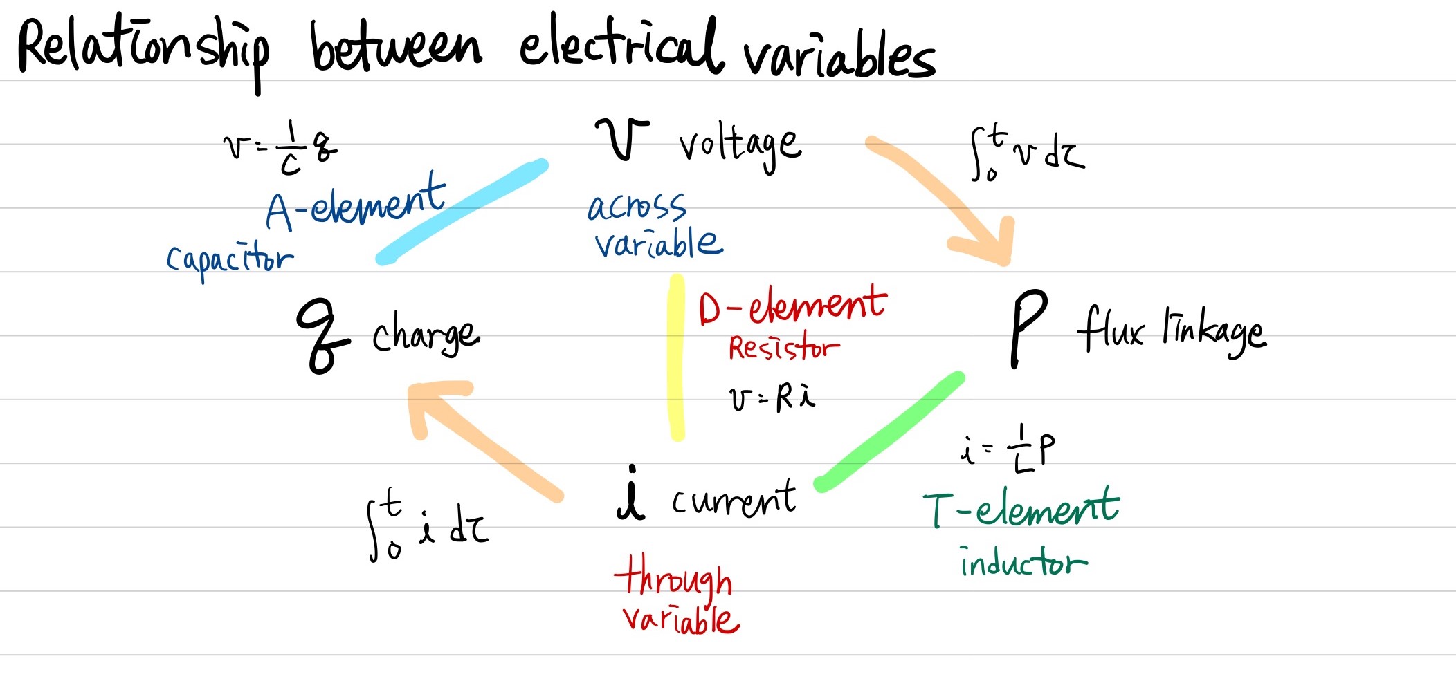 mechanical variables와 마찬가지로, through variable, across variable과 그 변수들을 이어줄 수 있는 element들을 중심으로 생각해볼 수 있습니다.