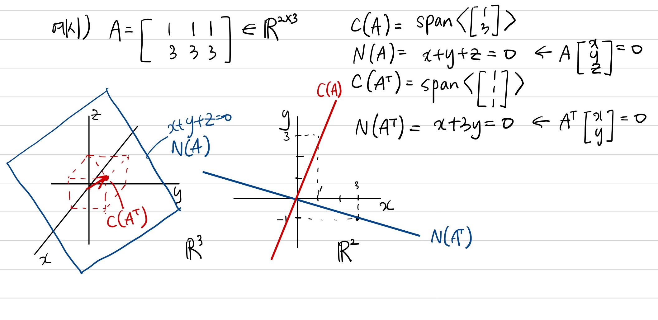 각각 column space $C(A)$, null space $N(A)$, row space $C(A^{T})$, left null space $N(A^{T})$를 구할 때, $N(A)\perp C(A^{T})$