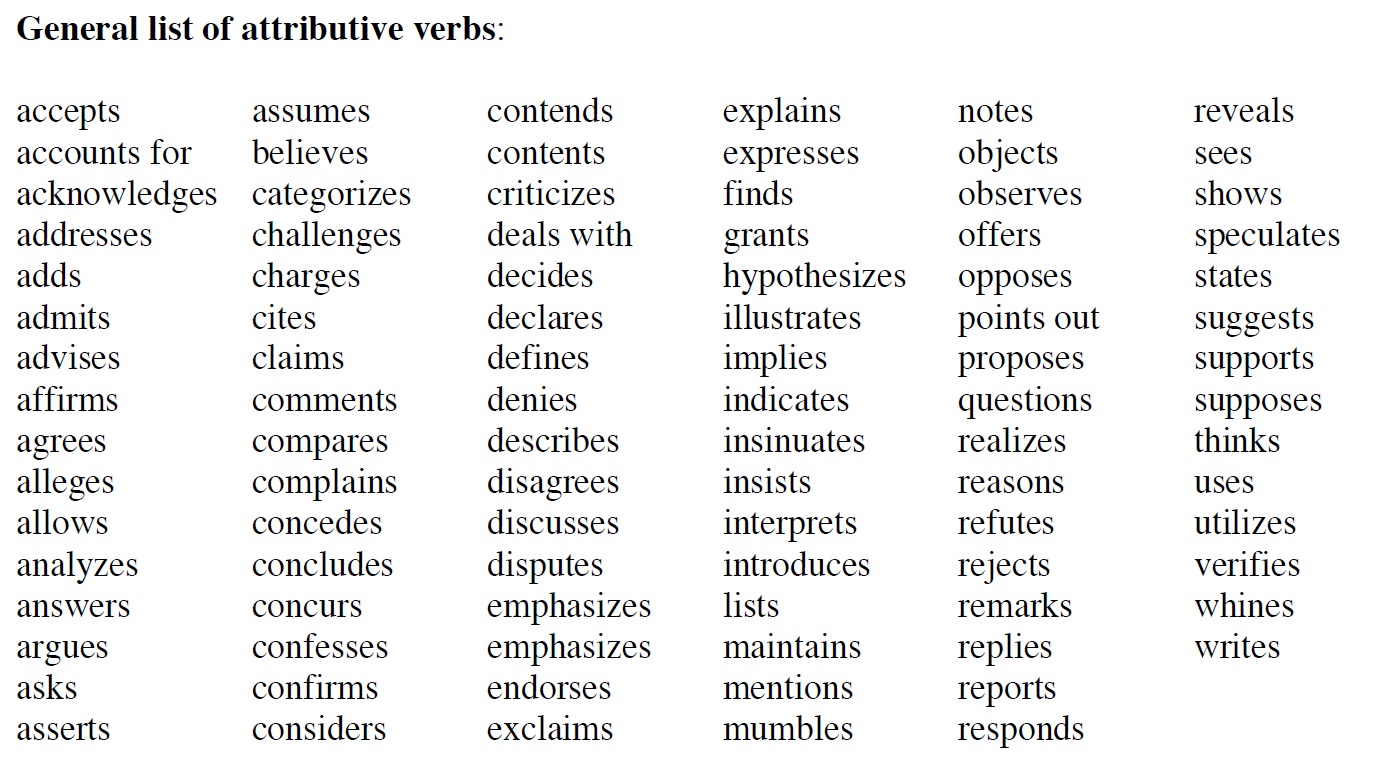 그 외의 다양하게 쓸 수 있는 동사들이다. 부적절한 단어를 써서 인용하고자 하는 사람의 의도를 왜곡하지 않도록 하자.