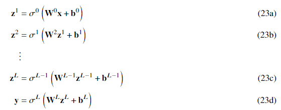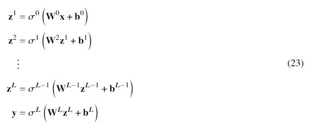 \vb{y} &= \sigma^{L}\left(\vb{W}^{L}\vb{z}^{L}+\vb{b}^{L}\right)