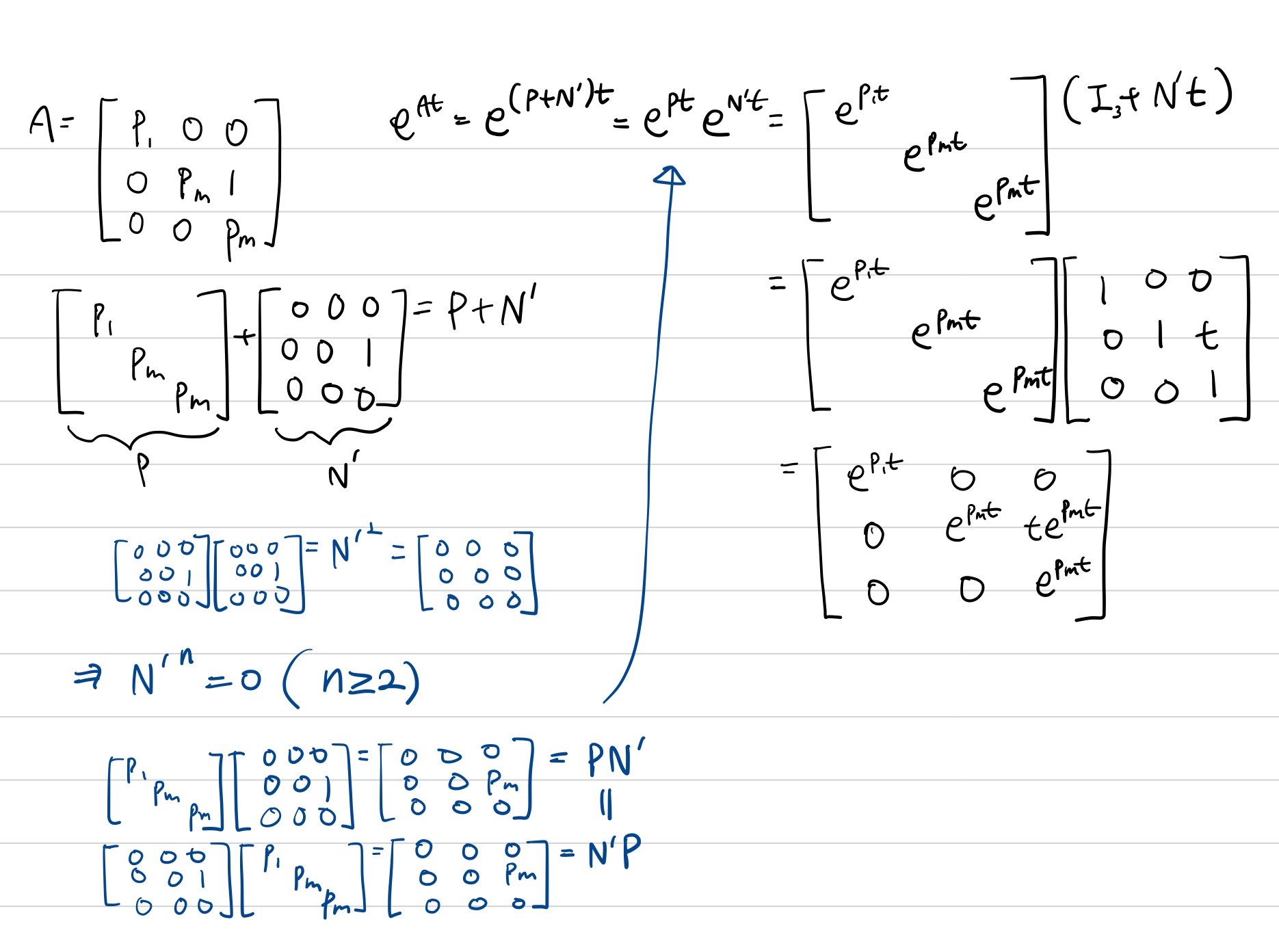 * $e^{A(t_{1})}e^{A(t_{2})}=e^{A(t_{1}+t_{2})}$