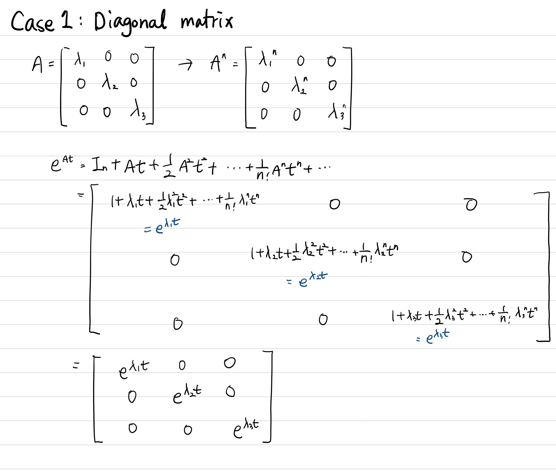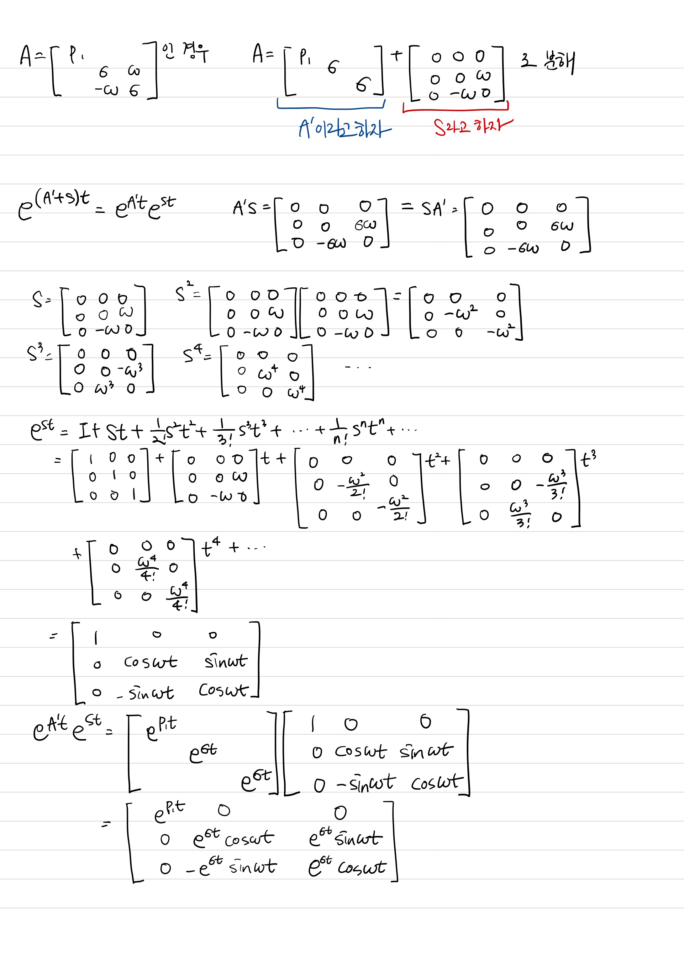 * $e^{A(t)}A = Ae^{A(t)}$ : 둘 다 n by n matrix인데 교환법칙이 성립한다.