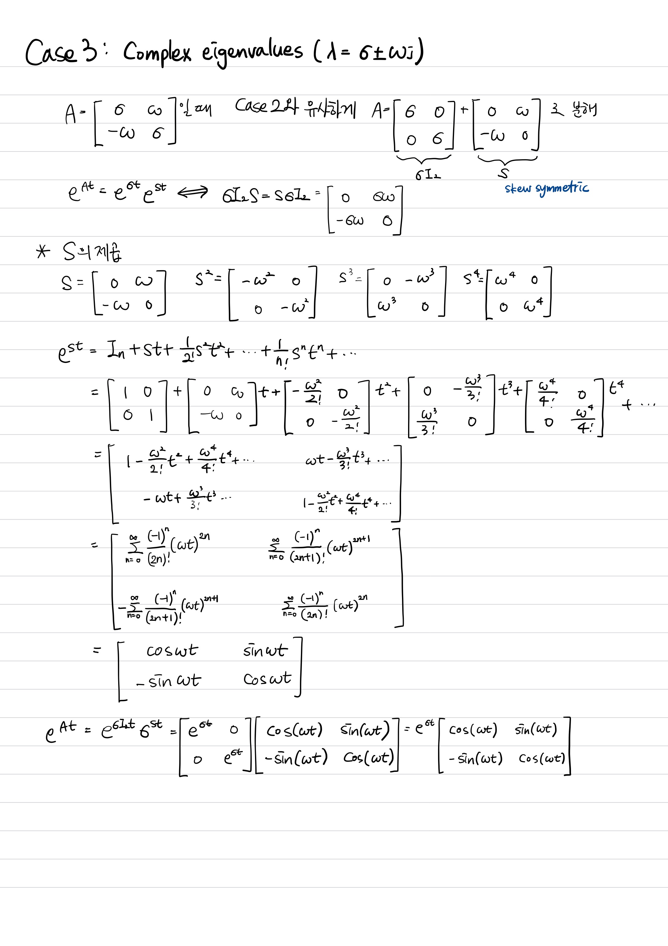 만약 matrix가 jordan form, diagonal matrix, complex eigenvalue의 조합이면 어떻게 할 것인가?