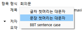 논문을 bibtex 파일로 export하는데 논문에서 요구하는 제목 형식은 2가지가 있다.