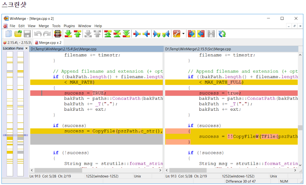 WinMerge라는 프로그램으로 코드 두개를 나란히 두고 비교해볼 수 있다.