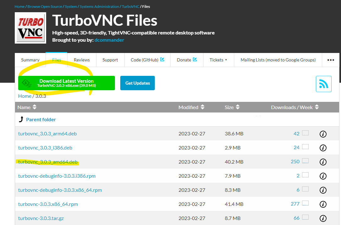아래의 turbovnc_3.0.3_amd64.deb는 리눅스에서 사용할 파일인데 리눅스가 어떤 파일 기반이느냐에 따라 다른 파일을 설치해야할 수도 있어서 일단 위의 초록색만 다운받는다.